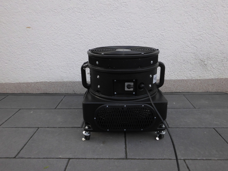 mit einem Lüfter 1,5 KW (230 V) betrieben.