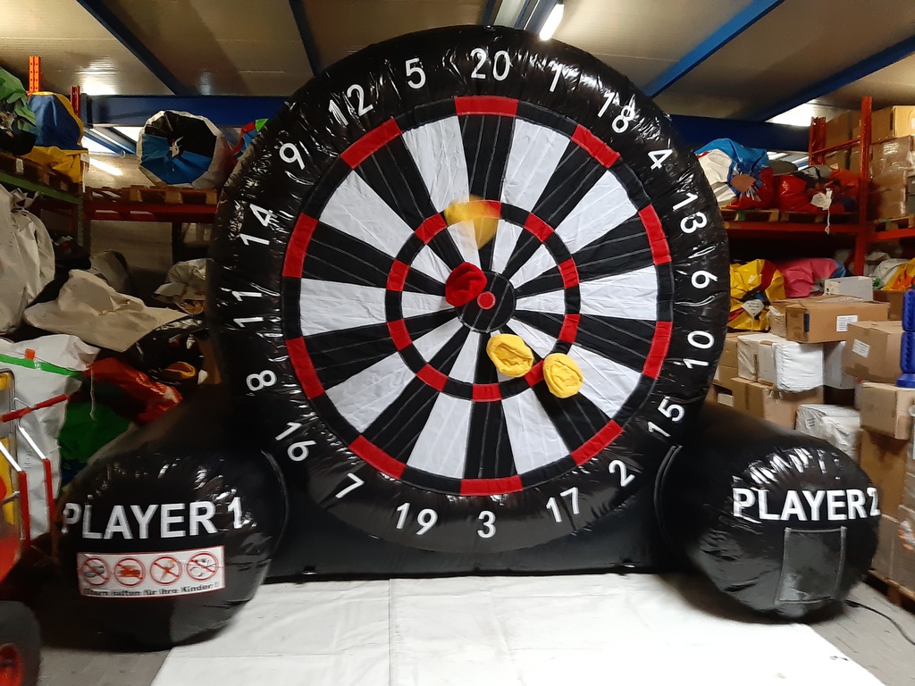 Die XXL-Dartscheibe ist die neue Attraktion bei uns im Sortiment. Man kann sowohl mit speziellen Fußbällen auf sie schießen (mit Klett) als auch mit riesigen Dartpfeilen auf sie werfen. Diese XXL-Dartscheibe sorgt für viel Spannung und gute Laune. Man kann sie alleine, 1 zu 1, oder mit mehreren Teams bespielen. Diese XXL-Dartscheinbe eignet sich sowohl für Kinder/Jugendliche als auch für Erwachsene.