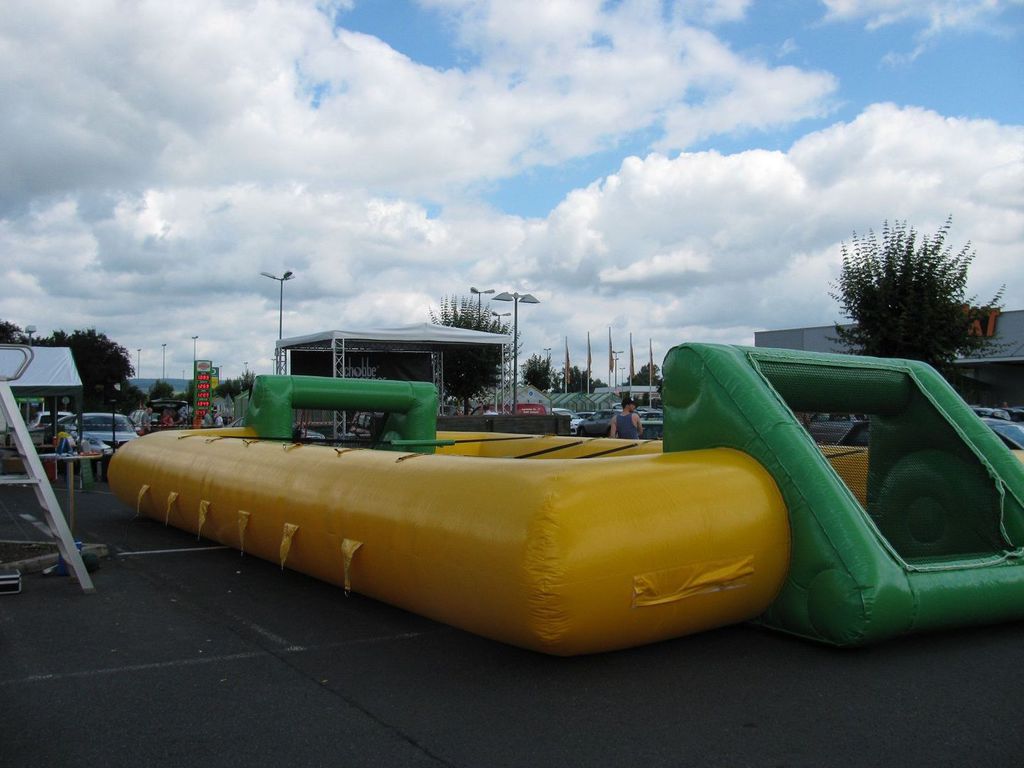 Die Maße des Menschenkickers betragen ca. 11 m x 7 m x 2 m.