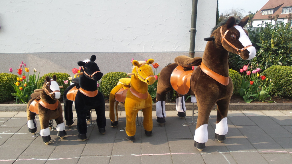 Wir verleihen vier professionelle Pferde von Ponycycle. Ein Pferd für die Altersgruppe 3-5 Jahren; zwei Pferde für die Altersgruppe 4-8 Jahre und ein Pferd für die Altersgruppe ab 8 Jahren.